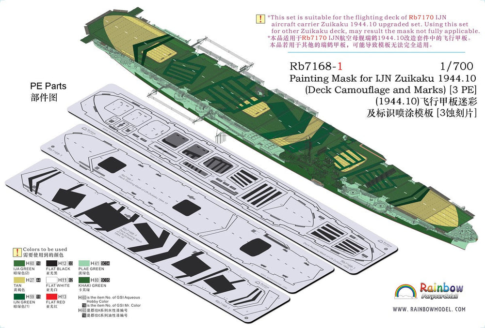 ![Rainbow RB7168-1 1/700Detail Up Painting Mask for IJN Zuikaku 1944.10 (Deck Camouflage and Marks) [3 PE]](http://ssmodel.com/cdn/shop/files/Rb7168_1_medium.jpg?v=1763358392)